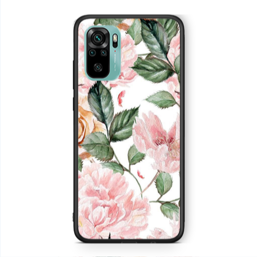 Θήκη Xiaomi Redmi Note 10 4G Pink rose and laves Black Glossy