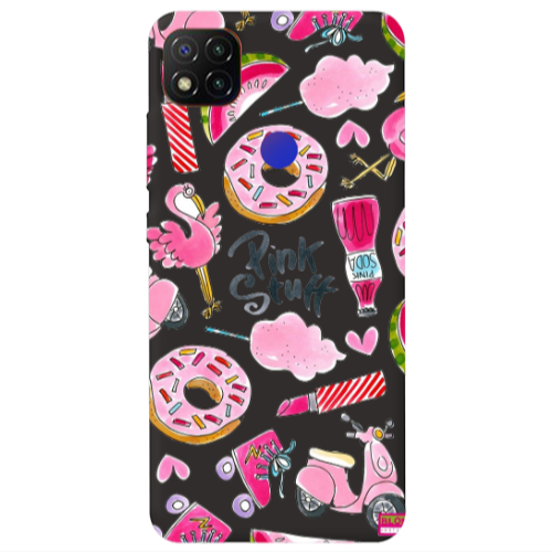 Θήκη Xiaomi Redmi 9c pink stuff Black Colored Silicone TPU