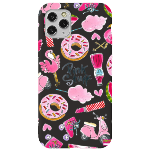 Θήκη Apple iPhone 11 Pro Max pink stuff Black Colored Silicone TPU
