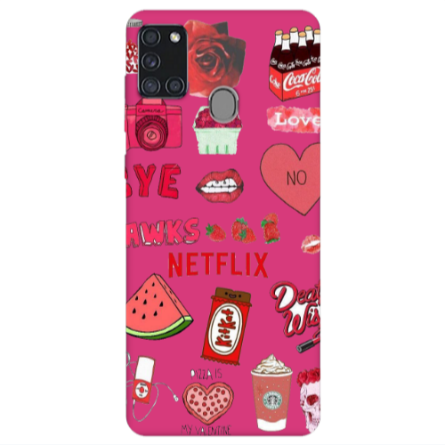 Θήκη Samsung A21S pizza is my valentine Fuchsia Colored Silicone TPU