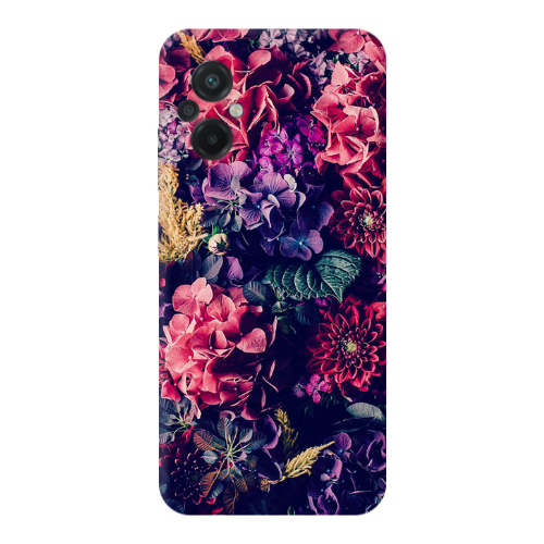 Θήκη Xiaomi Poco M5 Purple and pink flowers Transparent Silicone TPU