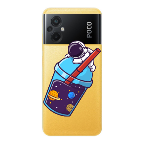 Θήκη Xiaomi Poco M5 Astronaut flies a plane Transparent Silicone TPU