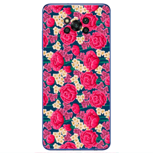 Θήκη Xiaomi Poco X3 /X3 Pro Red Flowers Dark blue Colored Silicone TPU