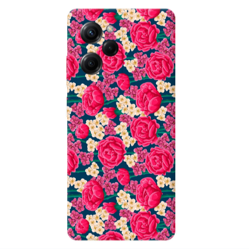 Θήκη Xiaomi Poco X5 Pro Red and pink Flowers Dark blue Colored Silicone TPU