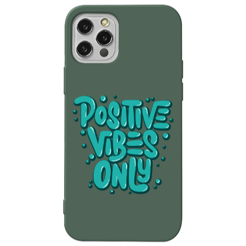 Θήκη Apple iPhone 12 Pro Positive Vibes Only Dark Green Colored Silicone TPU