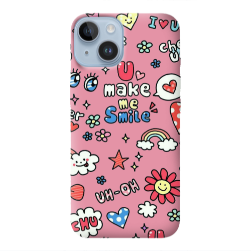 Θήκη Apple iPhone 14 Rainbow flowers Pink Colored Silicone TPU