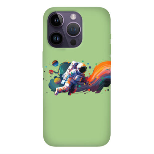 Θήκη Apple iPhone 14 Pro Max Rainbow Space Light Green Colored Silicone TPU