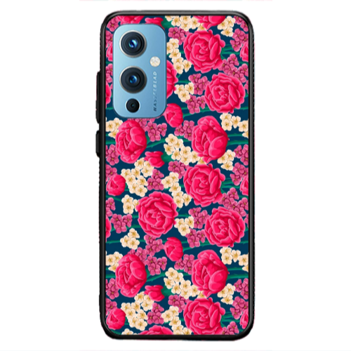 Θήκη Oneplus 9 5G Red and pink Flowers Black Glossy