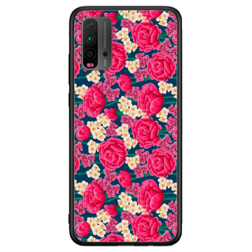 Θήκη Xiaomi Redmi 9T Red and pink Flowers Black Glossy