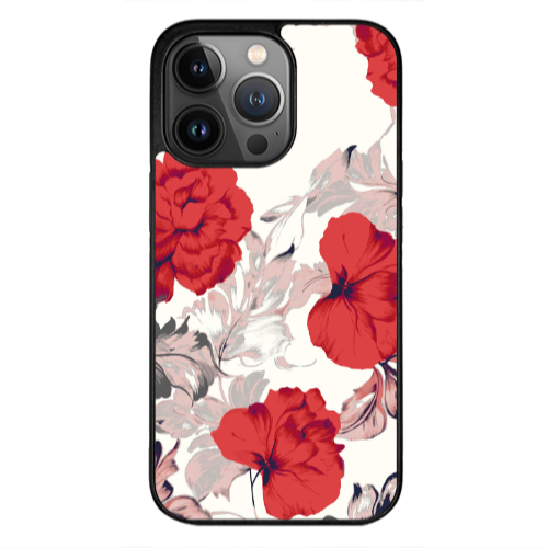 Θήκη Apple iPhone 13 Pro Red Flowers Black Glossy
