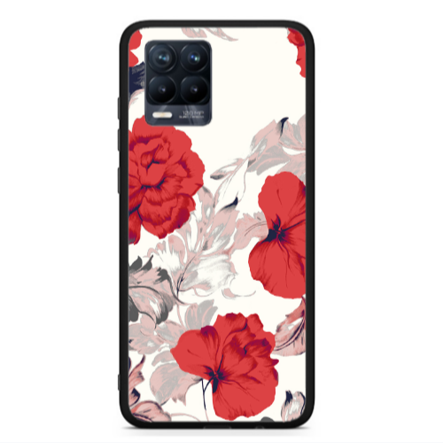 Θήκη Realme 8 Red Flowers Black Glossy