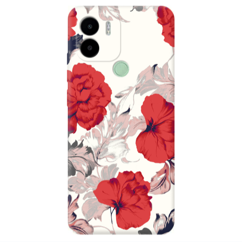 Θήκη Xiaomi Redmi A1 + Red Flowers Transparent Silicone TPU