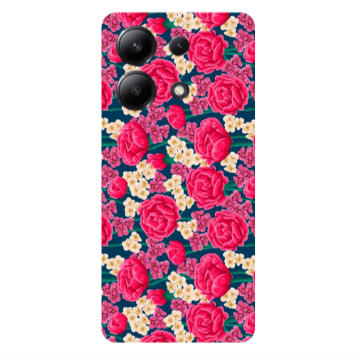 Θήκη Xiaomi Redmi Note 13 4G Red and pink Flowers Dark blue Colored Silicone TPU