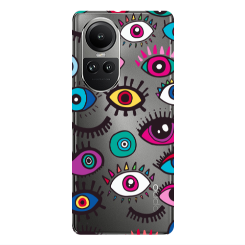 Θήκη Oppo Reno10 5G Gold evil eye beads Transparent Silicone TPU