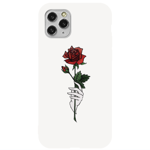 Θήκη Apple iPhone 11 Pro Max Rose in hand Black Colored Silicone TPU