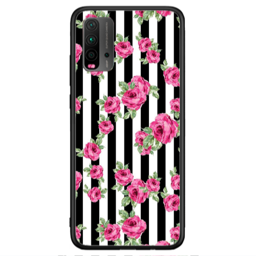 Θήκη Xiaomi Redmi 9T Roses and black line Black Glossy