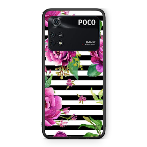Θήκη Xiaomi Poco M4 Pro 4G Roses on the line Black Glossy