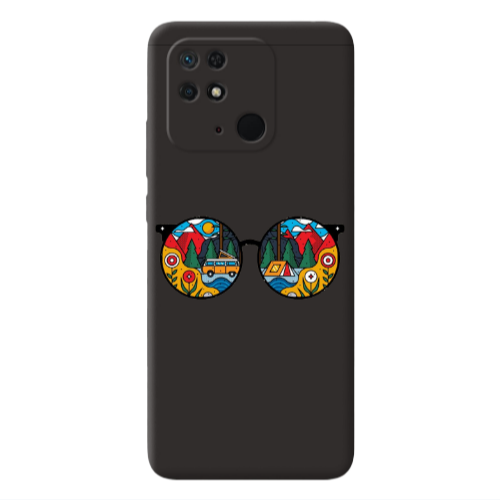 Θήκη Xiaomi Redmi 10C Round Glasses Black Colored Silicone TPU