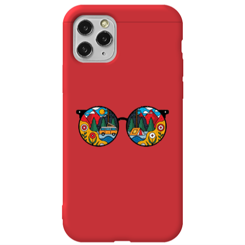 Θήκη Apple iPhone 11 Pro Max Round Glasses Red Colored Silicone TPU