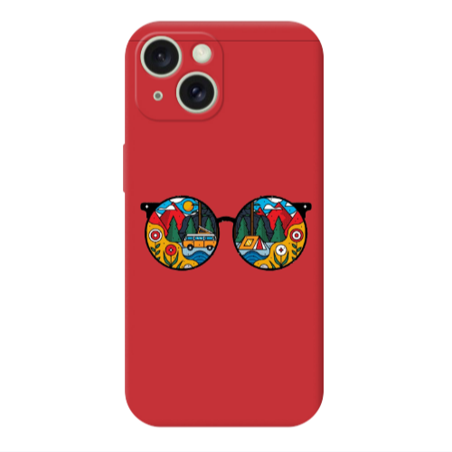 Θήκη Apple iPhone 15 Plus Round Glasses Red Colored Silicone TPU