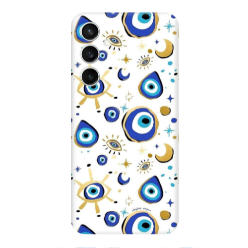 Θήκη Samsung S24 FE Gold evil eye beads Transparent Silicone TPU