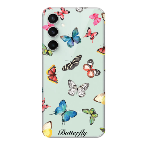 Θήκη Samsung S24 FE Mixed Butterflys Pink Colored Silicone TPU