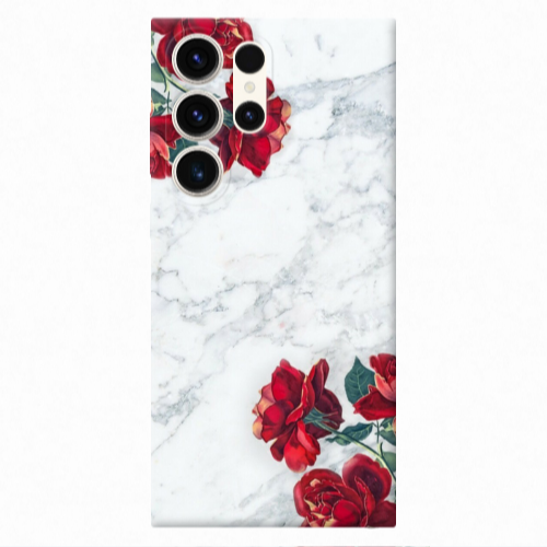 Θήκη Samsung S25 Ultra red roses marble Transparent Silicone TPU
