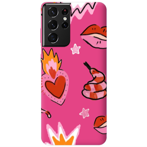 Θήκη Samsung S21 Ultra Snake heart Fuchsia Colored Silicone TPU
