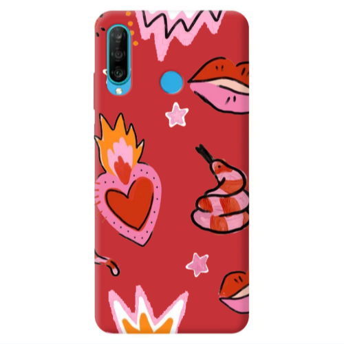 Θήκη Huawei P30 Lite Snake heart Red Colored Silicone TPU