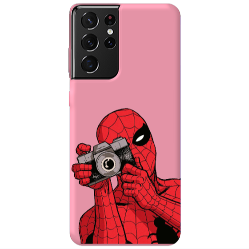 Θήκη Samsung S21 Ultra Spiderman take picture Pink Colored Silicone TPU