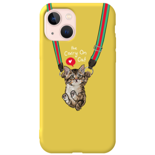 Θήκη Apple iPhone 13 Swinging cat Yellow Colored Silicone TPU