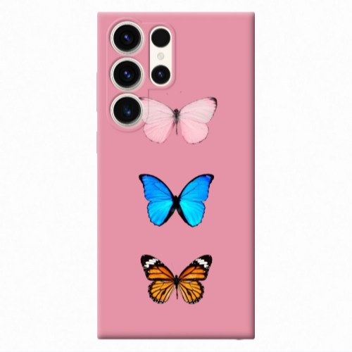 Θήκη Samsung S24 Ultra Triple Butterfly Pink Colored Silicone TPU