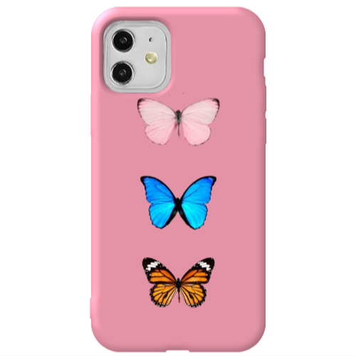 Θήκη Apple iPhone 11 Triple Butterfly Pink Colored Silicone TPU