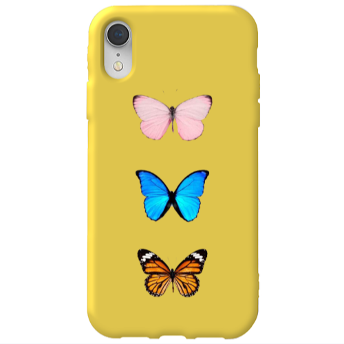Θήκη Apple iPhone Xr Triple Butterfly Yellow Colored Silicone TPU