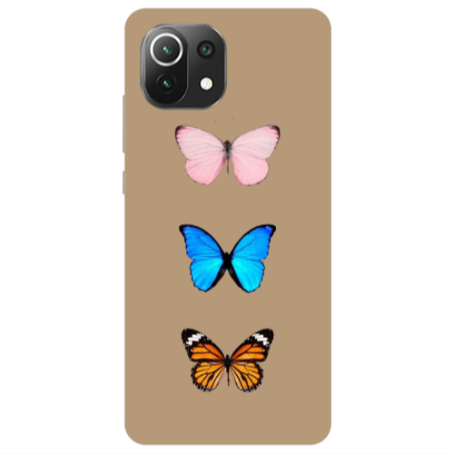 Θήκη Xiaomi Mi 11 Lite Triple Butterfly Brown Colored Silicone TPU