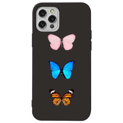 Θήκη Apple iPhone 12 Pro Max Triple Butterfly Black Colored Silicone TPU