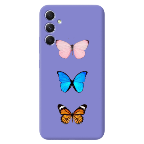 Θήκη Samsung A34 Triple Butterfly Purple Colored Silicone TPU