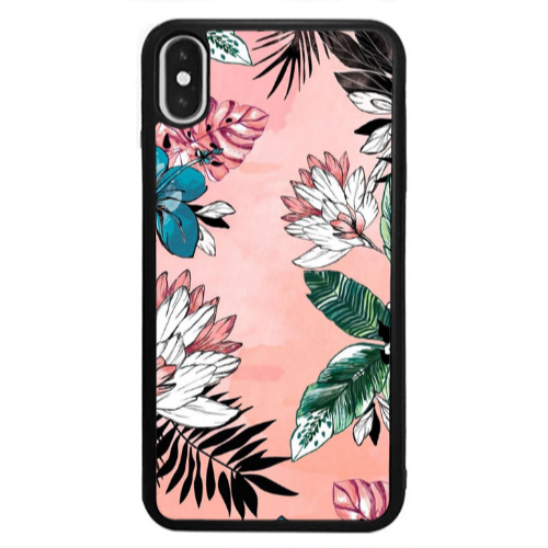 Θήκη Apple iPhone Xs Max Tropical flowers Black Glossy