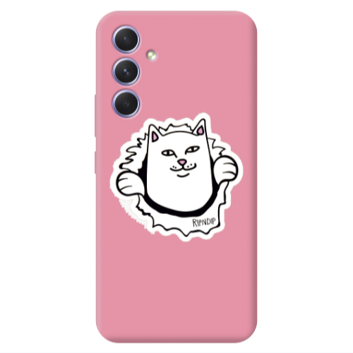 Θήκη Samsung A36 White cat Pink Colored Silicone TPU