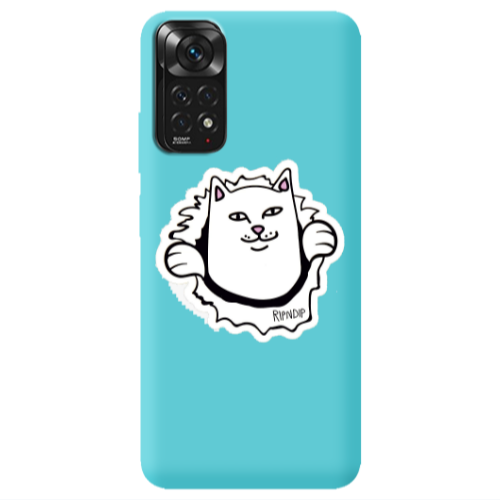 Θήκη Xiaomi Redmi Note 11 4G White cat Turquoise Colored Silicone TPU