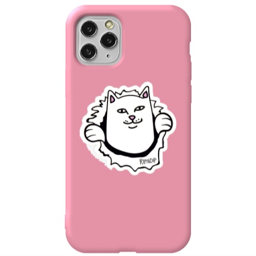 Θήκη Apple iPhone 11 Pro White cat Pink Colored Silicone TPU