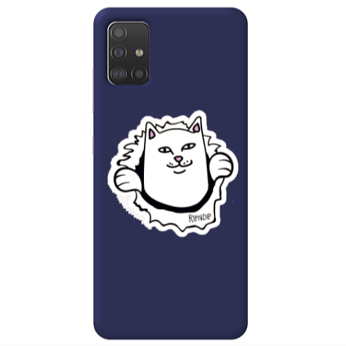 Θήκη Samsung A71 White cat Dark blue Colored Silicone TPU