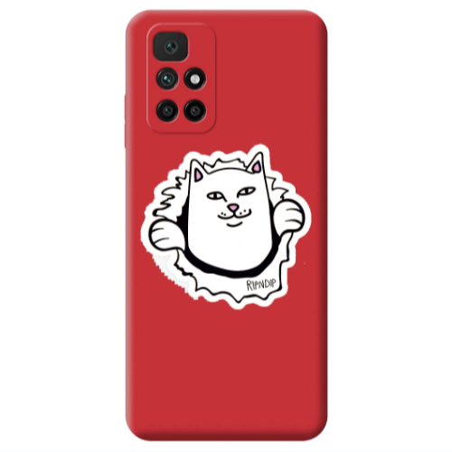 Θήκη Xiaomi Redmi 10 2022 White cat Red Colored Silicone TPU