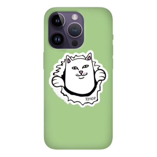 Θήκη Apple iPhone 14 Pro Max White cat Light Green Colored Silicone TPU