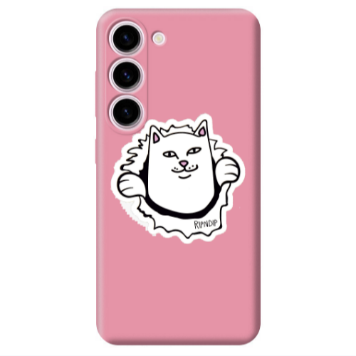 Θήκη Samsung S23 White cat Pink Colored Silicone TPU