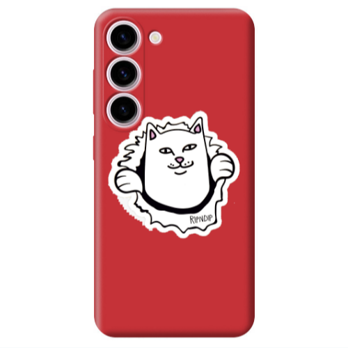 Θήκη Samsung S23 Plus White cat Red Colored Silicone TPU