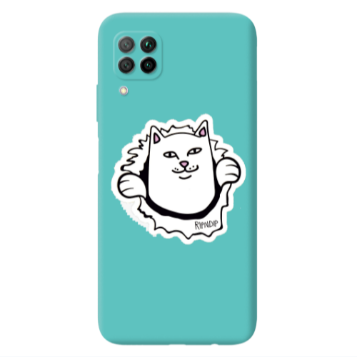 Θήκη Huawei P40 Lite White cat Turquoise Colored Silicone TPU