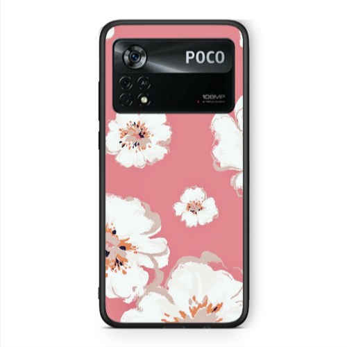 Θήκη Xiaomi Poco X4 Pro White Flowers Black Glossy
