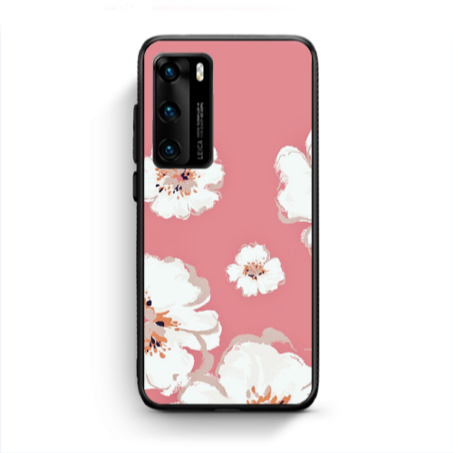Θήκη Huawei P40 White Flowers Black Glossy