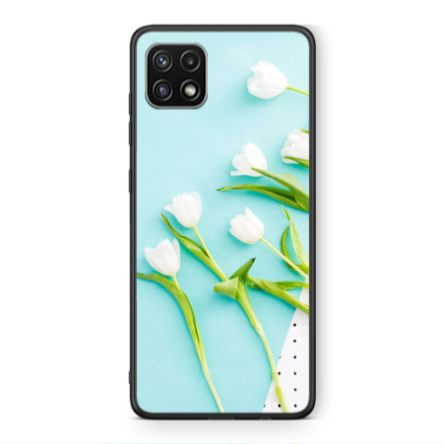 Θήκη Samsung A22 5G White Tulips Black Glossy